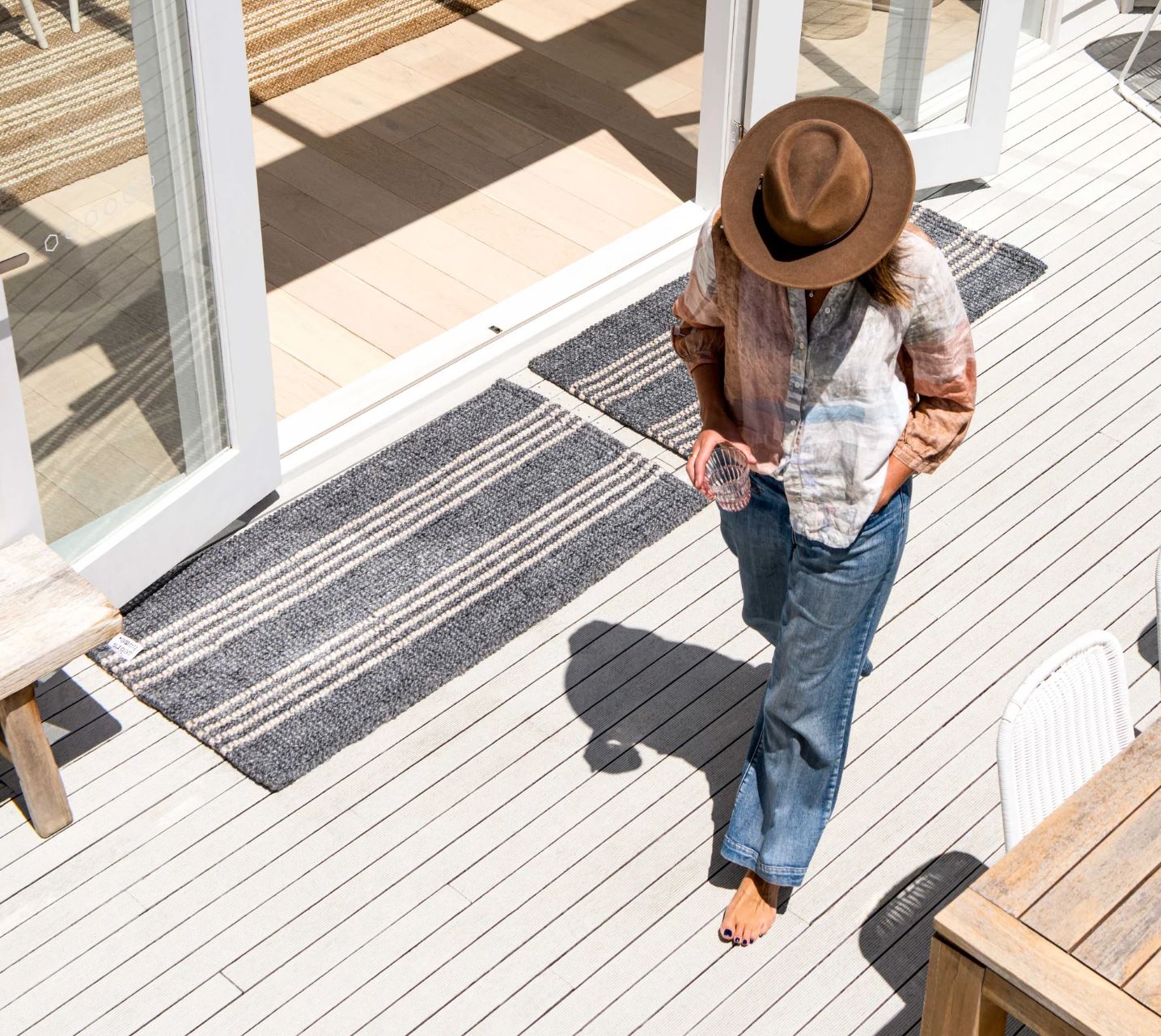 The Cornell Outdoor/Indoor Stripe Rug, crafted from 100% recycled plastic, feels surprisingly soft—like chunky wool. Perfect for any area in your home, from front and back doors to kitchens, laundries, bathrooms, and even doggie doors, these mats handle both wet and dry spots effortlessly. Plus, they’re machine washable, coming out fresh and almost dry after a cold cycle. Enjoy both lasting durability and stylish design with a mat that enhances your space while standing up to everyday use.