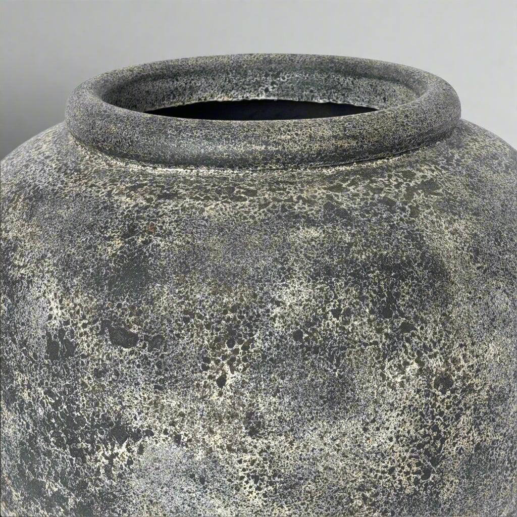 The Milan Pot features a timeless, traditional design with a textured surface that exudes a rustic, understated charm. Handmade by skilled artisans in Java using terracotta, it is finished in a sophisticated dark grey shade. This decorative pot makes a striking accent on its own, whether placed indoors or outdoors.