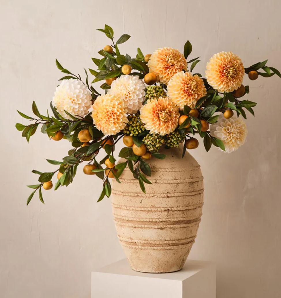 Bring vibrant citrus elegance into your home with this stunning orange spray. Featuring lifelike fruit and foliage, it effortlessly elevates any room when displayed in a pot or vase. Perfect for adding natural warmth and botanical charm to shelves, tables, or entryways without the upkeep of fresh flowers.